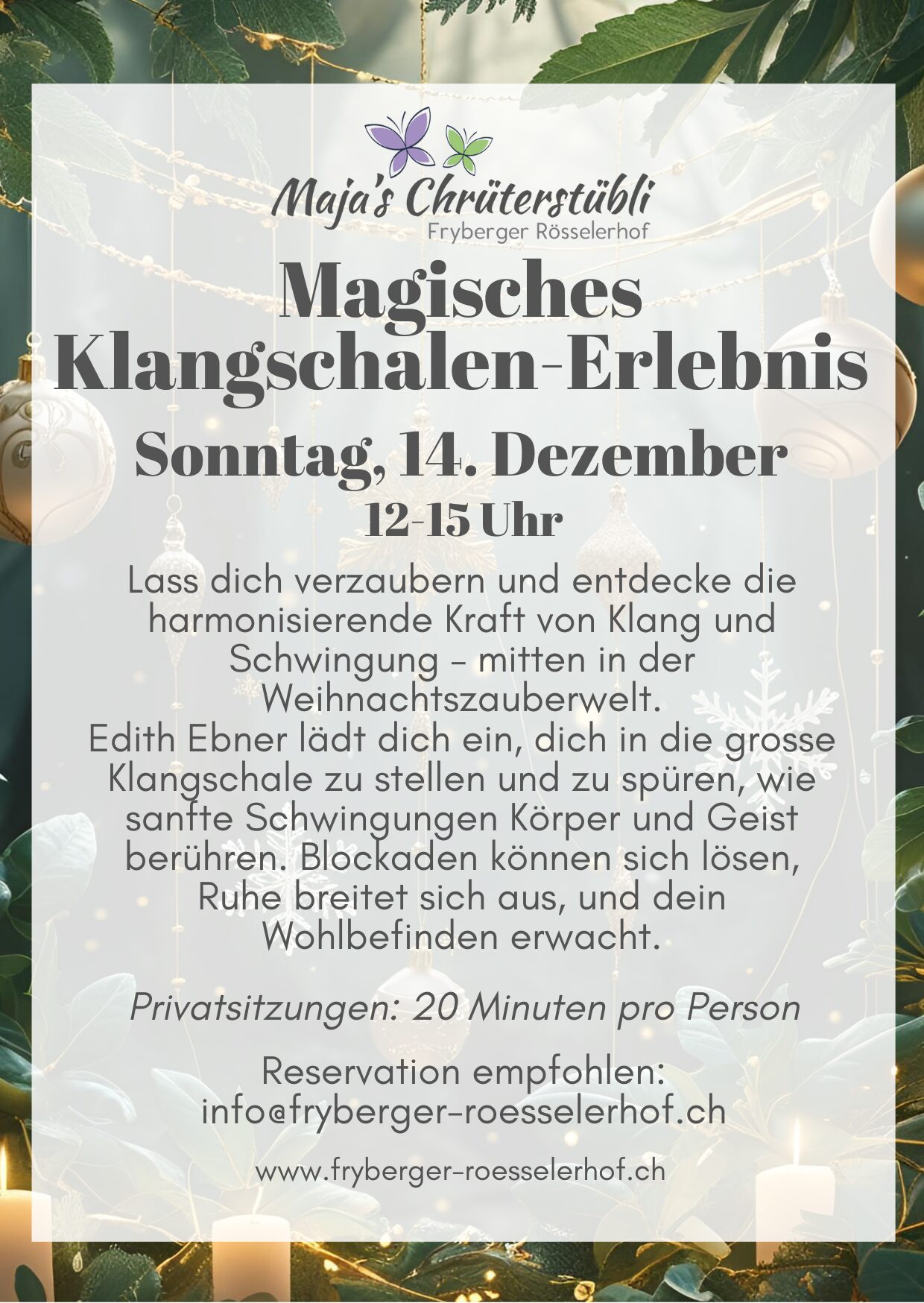 Lass dich verzaubern und entdecke die harmonisierende Kraft von Klang und Schwingung – mitten in der Weihnachtszauberwelt.